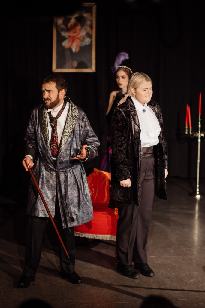 На фото актеры в пьесе ЖАННА АНУЯ «КРАСИВАЯ ЖИЗНЬ» ,режиссер Akvile Emilija Ruzgyte, костюмы Елена Ермошкина..